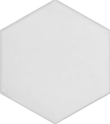 - Керамика из плитки белого цвета с шестиугольным узором 15 × 17 см изготавливается вручную. Поскольку он имеет фарфоровую основу, его водопоглощение очень низкое.