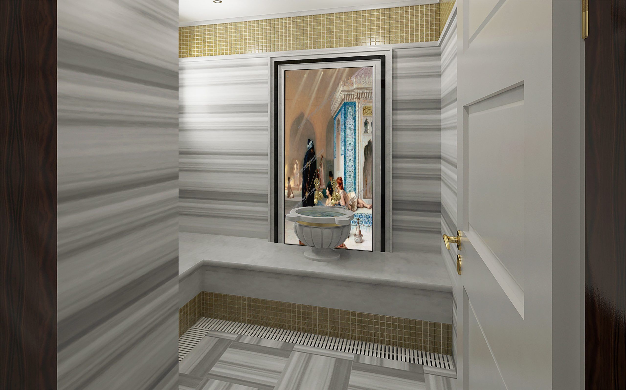 - Dünyada Modern ve klasik Türk hamamı Spa Banyo duvar seramikleri dijital baskı ürünleri otel villa dekorasyonunda kullanılmaktadır.