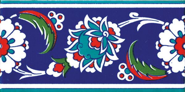 10×20 Cm KS 12 İznik Çiçek Desenli Seramik Çini Bordür