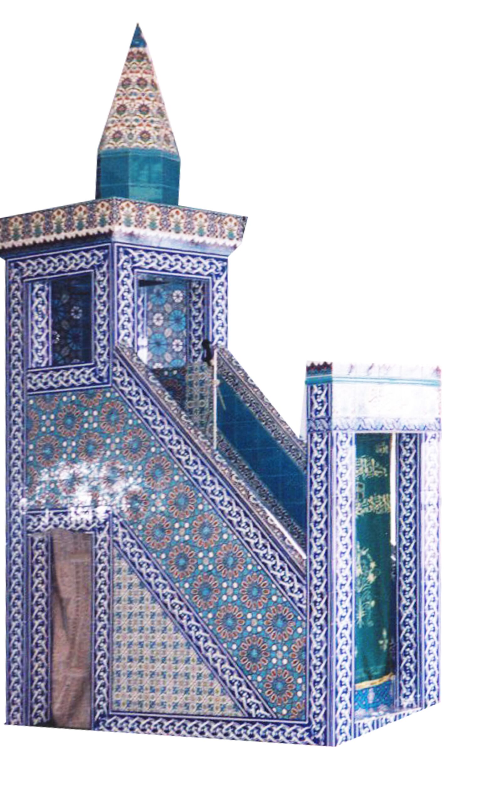 The pulpit of the mosque – Altar height and width dimensions can be adjusted according to the desired size. – In the verses of the – Fevell the verse – God C.C. and Muhammad s.a.v. green tiles are available. – Edge tiles in water and can be changed as well. Optional writing hand decoration or motif can be added. – According to the customer's request it can be designed from scratch. |