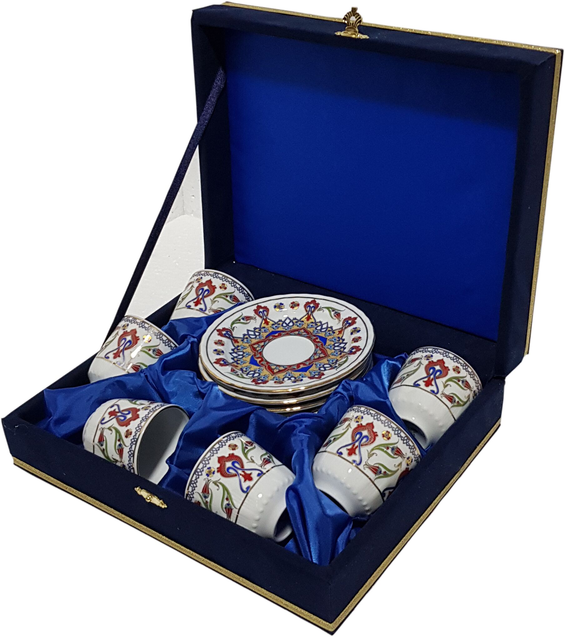 - Altın yaldızlı Porselen Fincan takımlarımız Çini desenleri veya Osmanlı desenleri kullanılarak yapılmıştır.