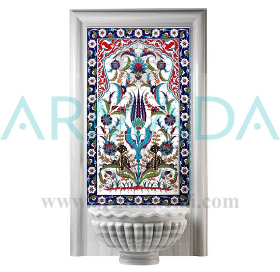 - 60×100 624 Hançer Lale Desen Türk Hamamı çini Pano çini desenli seramik karo yüzeyindeki parlak sır sayesinde kir tutmaz küf yapmaz. Kolay temizlenir.