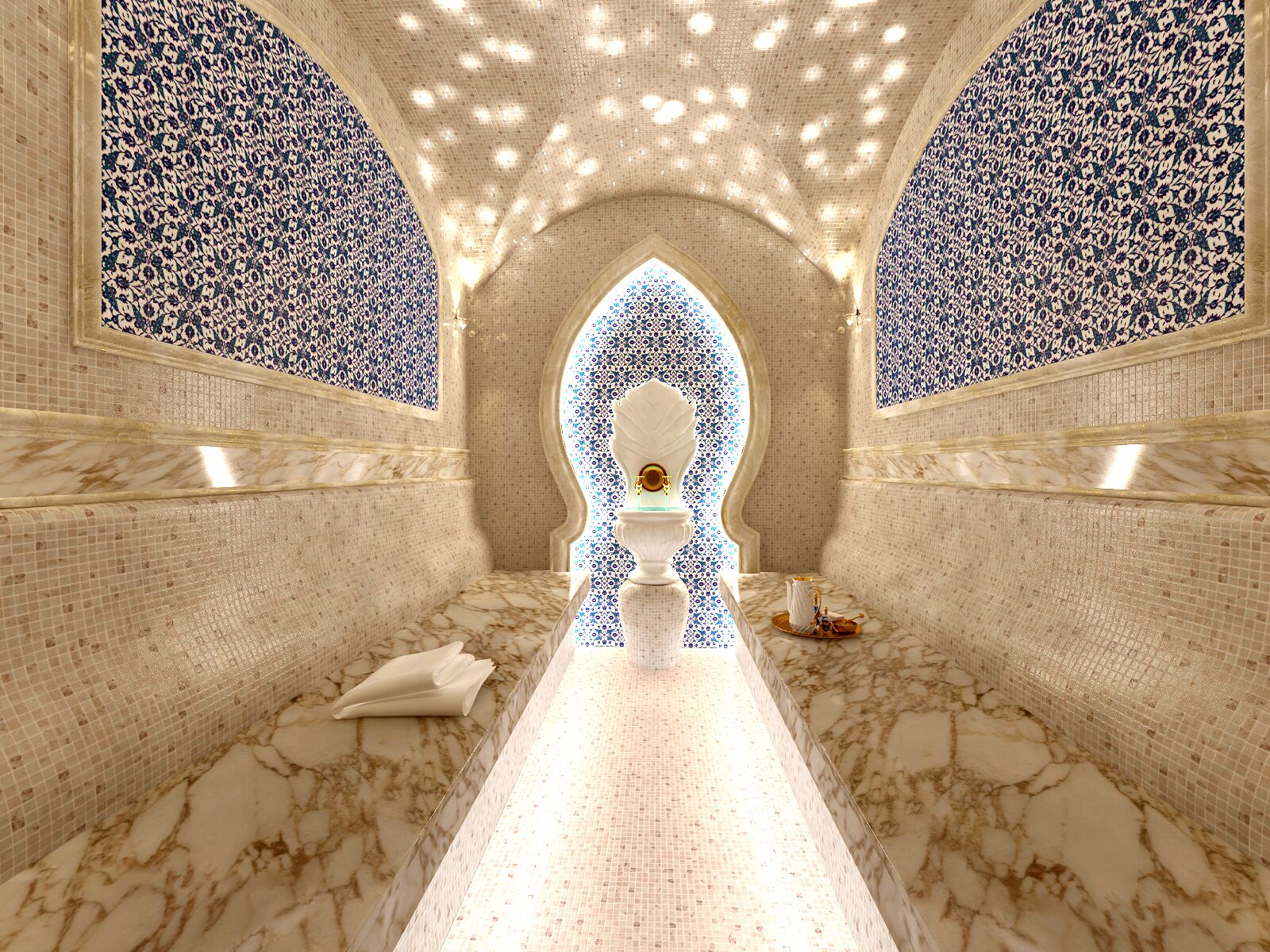 AC 32 Mavi Beyaz Çiçekli Desen Çini Türk Hamamı