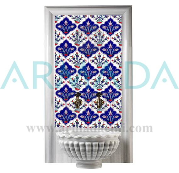 - AC-45 Otel Türk Hamamı Çini Kurna Arkası Örneği ürünler yüksek derecede piştiği için boyalar solmaz çıkmaz aşınmaz. Sırlı olarak üretim yapılmaktadır.