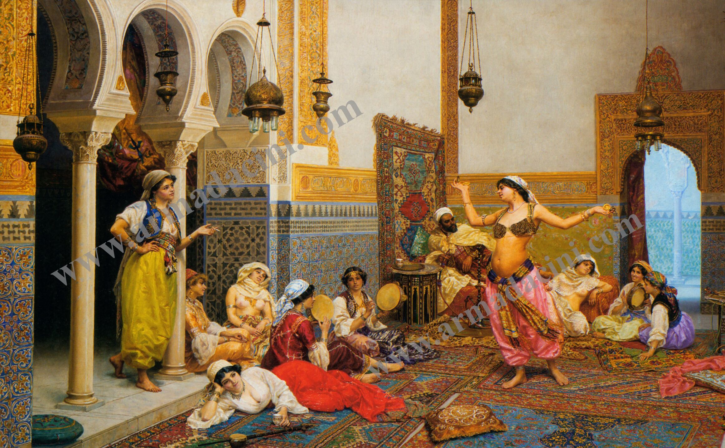 - Osmanlı Harem Cariyeler Rakkase Dijital Baskı Çini Pano çini desenli seramik karo yüzeyindeki parlak sır sayesinde kir tutmaz küf yapmaz. Kolay temizlenir.