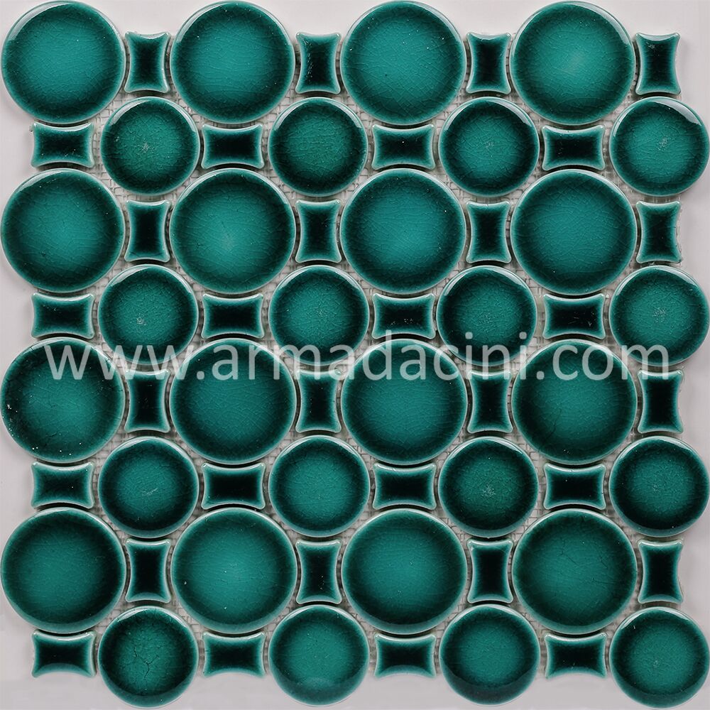 PC-830 Zümrüt Yuvarlak Porselen Fileli Mozaik Çini