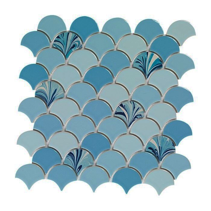 - Mavi Ebrulu Balık pulu Fileli Porselen Mozaik yapım özellikleri sayesinde Her biri dünyada kendi alanında nadide parçalardır.